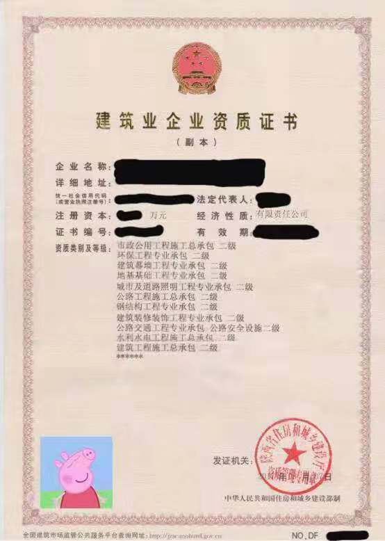 经营范围 | (含资质) 建筑工程总承包一级(有安证) 建筑装饰装修专业承包一级, 建筑幕墙专业承包一级(有安证) 地基基础工程一级(有安证) 水利水电总承包二级, 施工劳务(有安证) 建筑工程总承包二级, 市政公用总承包二级 , 机电工程总承包二级, 水利水电总承包二级 。 | ||||