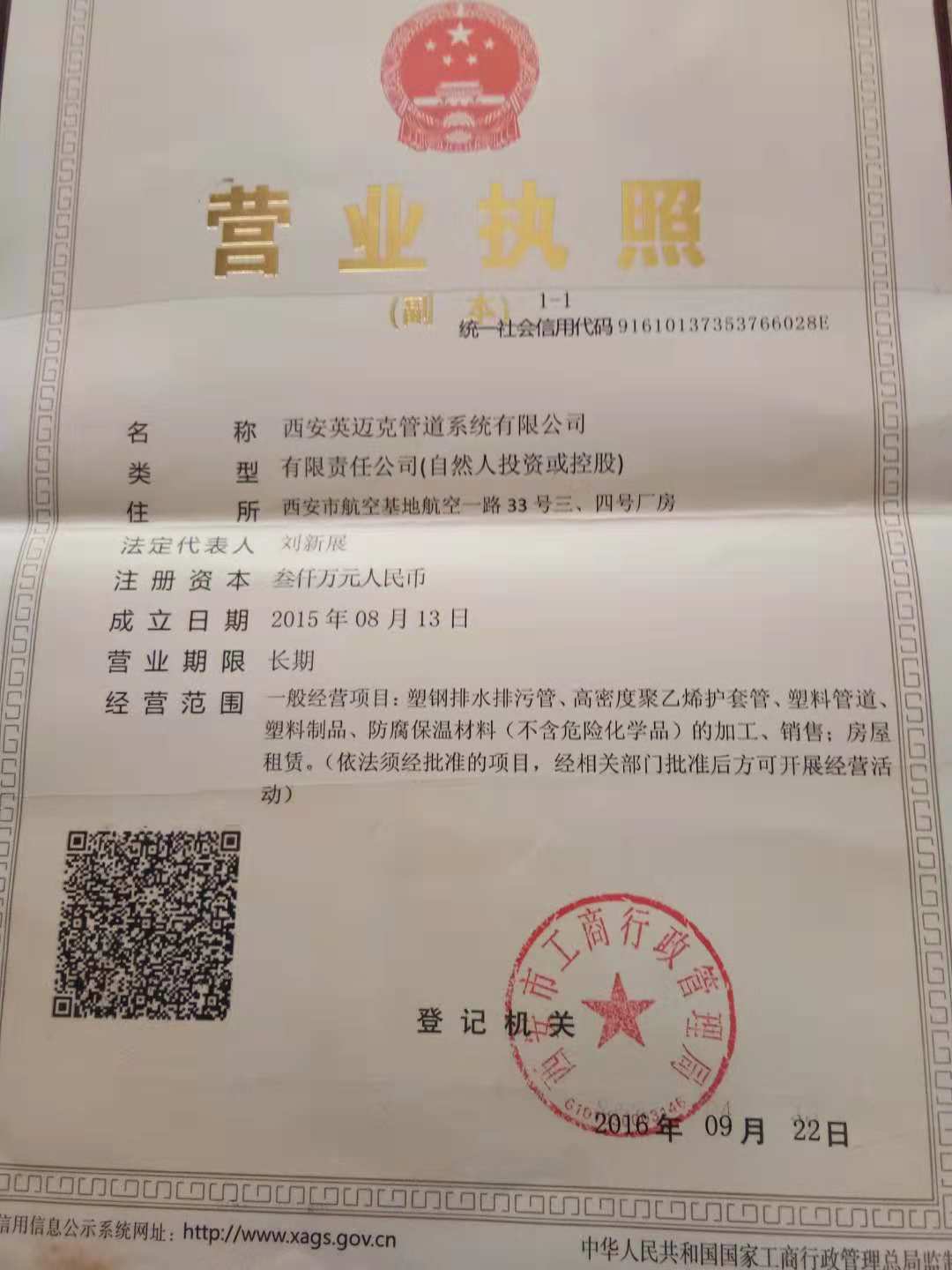 企业名称 | 西安XX克管道系统有限公司 | 成立时间 | 2016-09-22 | 行业分类 | 工程类 |